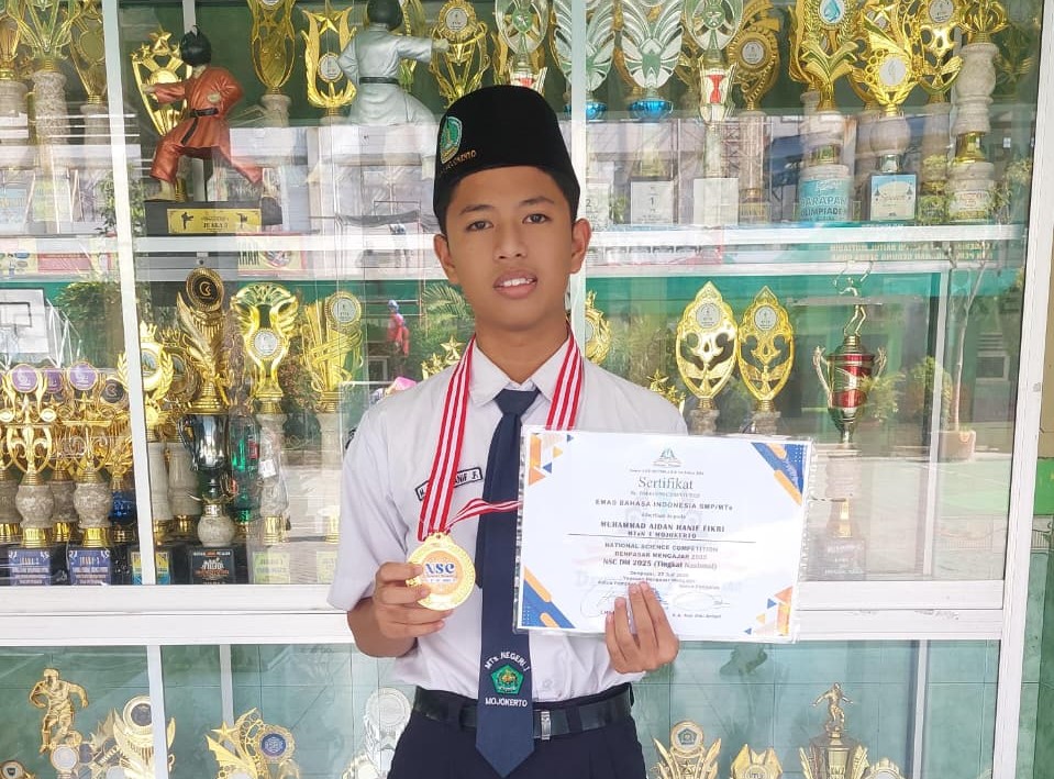 Read MoreKab. Mojokerto (MTsN 1) – Rabu (1/10/2025), Muhammad Aidan Hanif Fikri, seorang peserta didik berprestasi MTsN 1 Mojokerto, berhasil menorehkan prestasi gemilang dengan meraih medali emas dalam kompetisi tingkat nasional. Aidan berkompetisi di National Science Competition (NSC) DM 2025 6ang diselenggarakan oleh Yayasan Denpasar Mengajar pada (27/7). Dalam ajang bergengsi tersebut, Aidan berhasil menjadi yang…