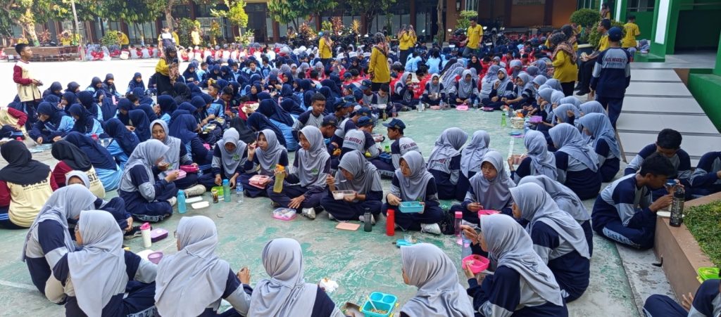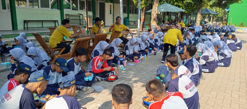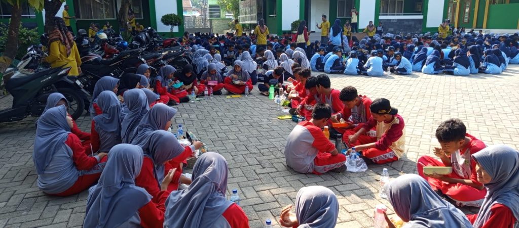 Kabupaten Mojokerto (MTsN 2 Mojokerto) – Makan bersama merupakan kegiatan untuk menjalin silaturahmi antar sesama siswa. Dimana, hal ini dapat menciptakan kesempatan untuk membangun dan memperkuat hubungan interaktif yang positif selama makan bersama. Dan dapat memperdalam rasa saling menghormati serta memahami antar individu. Maka dari itu, MTsN 2 Mojokerto mengadakan makan bersama pada hari Jum’at (3/10/2025). Dengan semangat kebersamaan sesama siswa, akan menjadi fondasi penting untuk menciptakan hubungan antar siswa yang harmonis dan sejahtera.