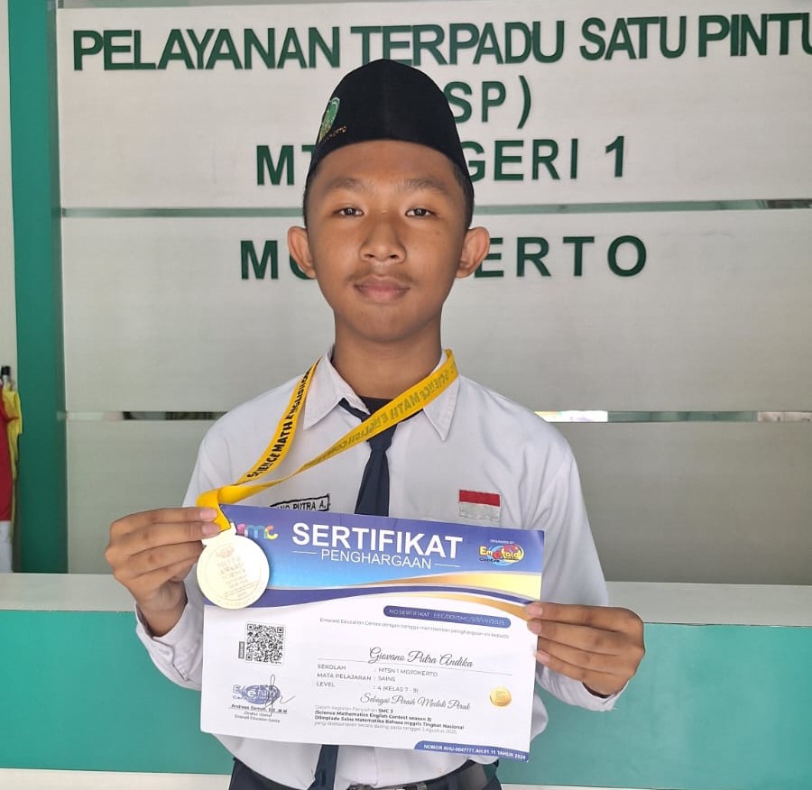 Read MoreKab. Mojokerto (MTsN 1) – Prestasi membanggakan kembali ditorehkan oleh peserta didik MTsN 1 Mojokerto pada Rabu, (8/10/2025). Giovano Putra Andika, sukses meraih penghargaan sebagai Peraih Medali Perunggu dalam ajang bergengsi Science Mathematics English Contest (SME Contest season 3) yang diselenggarakan oleh Emerald Education Center, pada (3/8). Givano, sapaan akrab peserta didik berprestasi ini, menunjukkan…