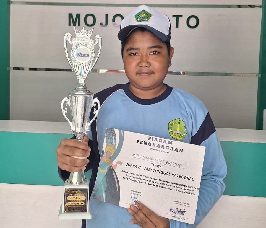 Kab. Mojokerto (MTsN 1) – Kabar membanggakan datang dari MTsN 1 Mojokerto pada Rabu (8/10) tahun 2025. Salah satu peserta didiknya, Muhammad Rafaf Prastian, berhasil meraih Juara II dalam kategori Tari Tunggal C pada ajang Lomba Tari Festival Muharram Wedding Expo 2025. Acara ini diselenggarakan oleh 96 Enterprise bekerja sama dengan Amertha Event Organizer, yang digelar pada (27/6) di Sunrise Mall 1 Kota Mojokerto.