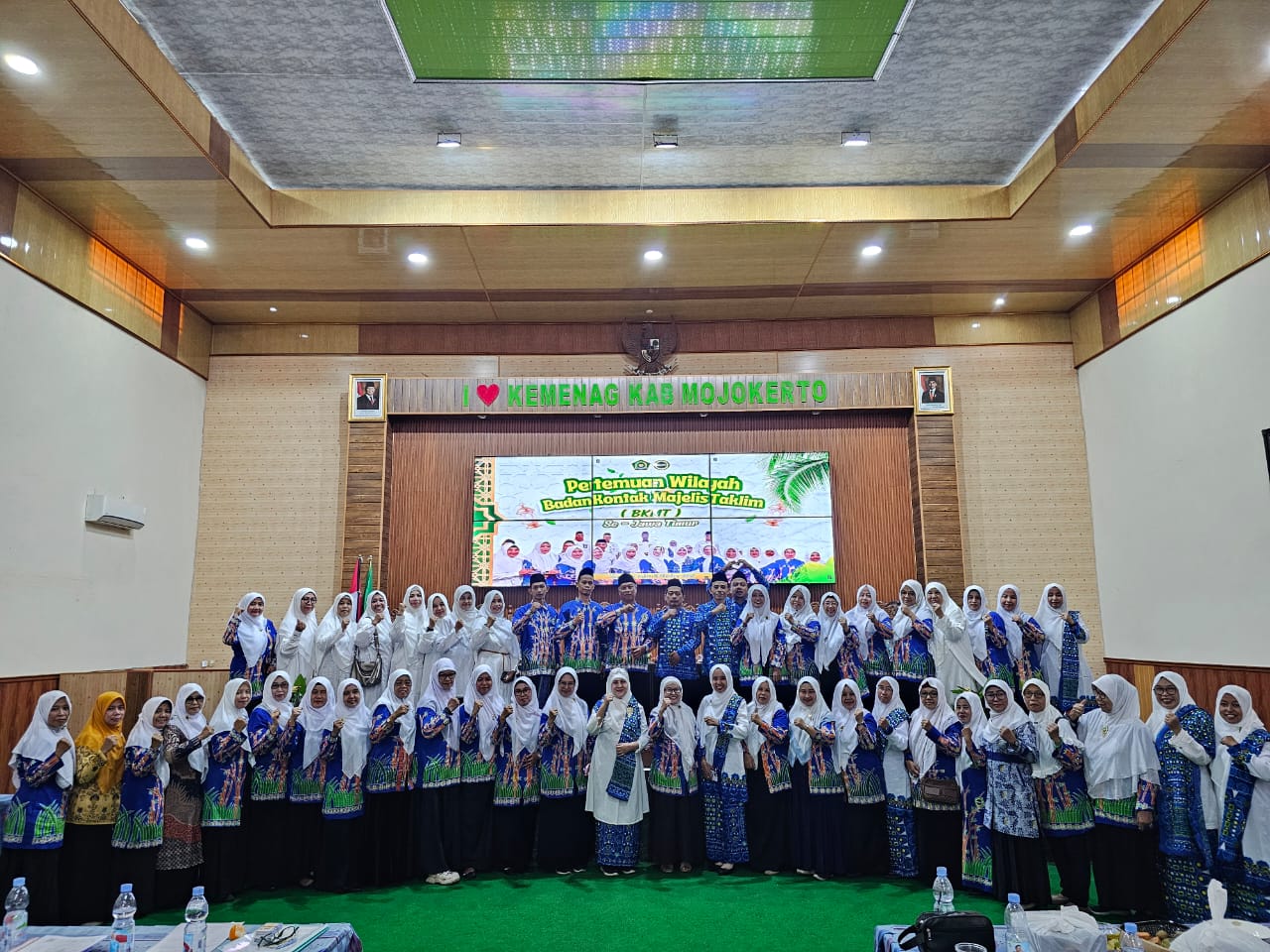 Aula Kantor Kementerian Agama Kabupaten Mojokerto pada Sabtu (11/10/2025) menjadi tempat terselenggaranya Pertemuan Wilayah Badan Kontak Majelis Taklim (BKMT) Provinsi Jawa Timur Periode III Tahun 2025. Kegiatan berlangsung khidmat dan penuh semangat kebersamaan, diikuti oleh pengurus wilayah, pengurus daerah, serta para ketua BKMT kecamatan se-Kabupaten Mojokerto.