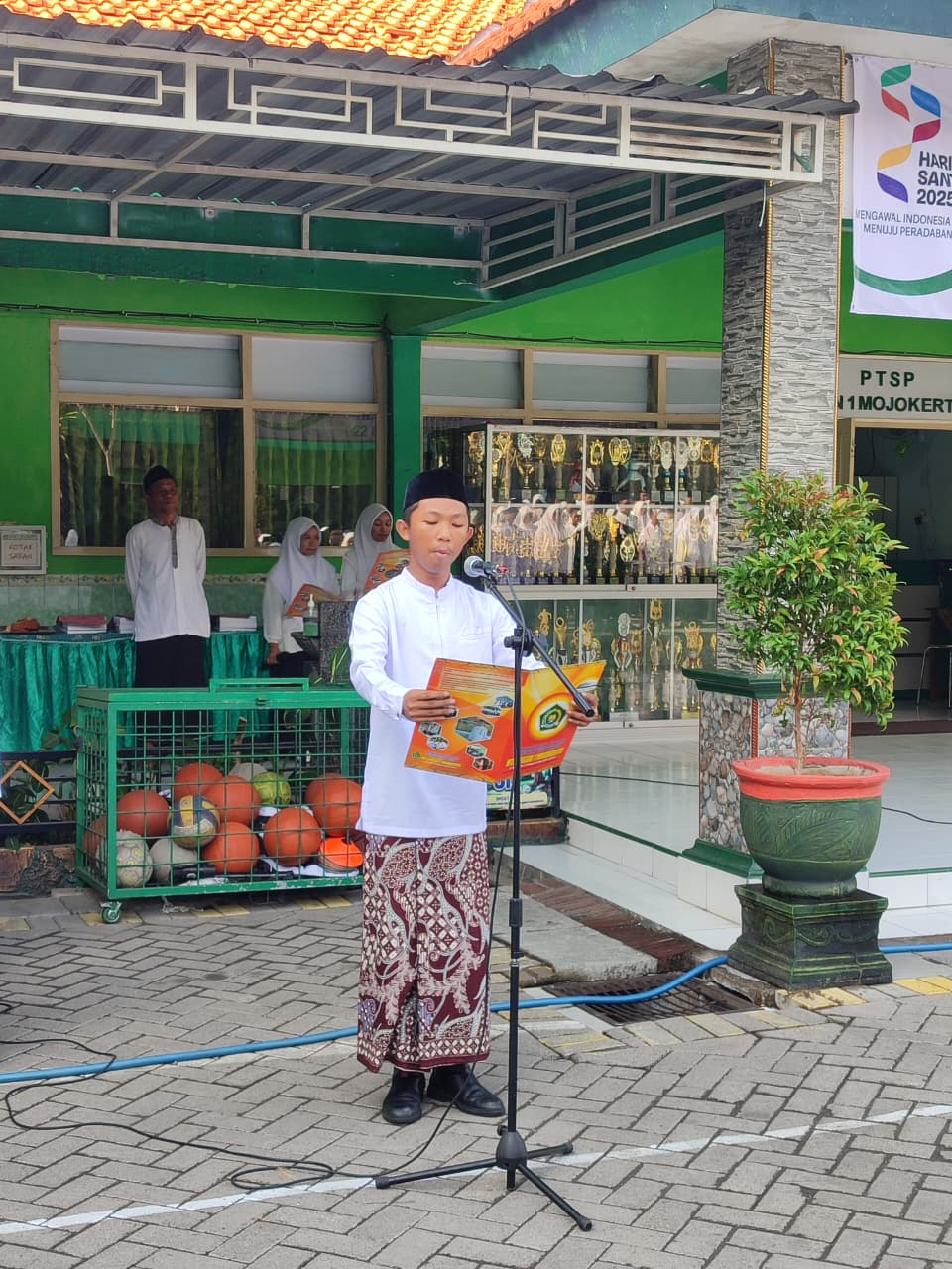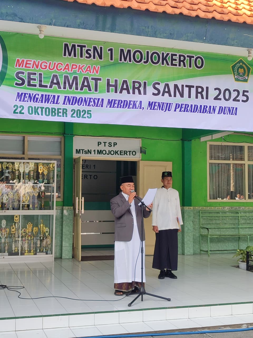 Kab. Mojokerto Jatim (MTsN 1 Mojokerto). Pada Rabu (22/10) tahun 2025, seluruh GTK dan siswa MTsN 1 Mojokerto melaksanakan apel peringatan Hari Santri Nasional tahun 2025. Dimulai tepat pukul 07.00 WIB, pelaksanaan apel bertempat di halaman madrasah.