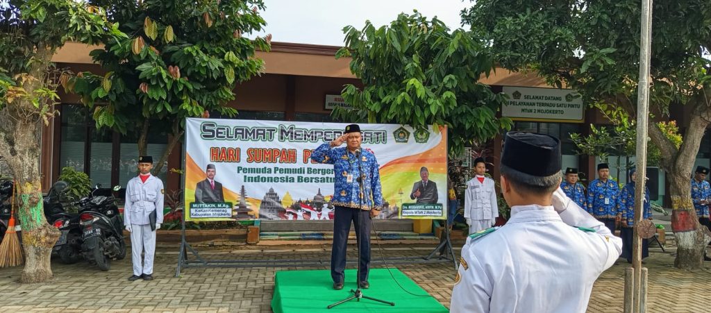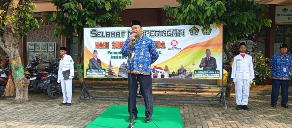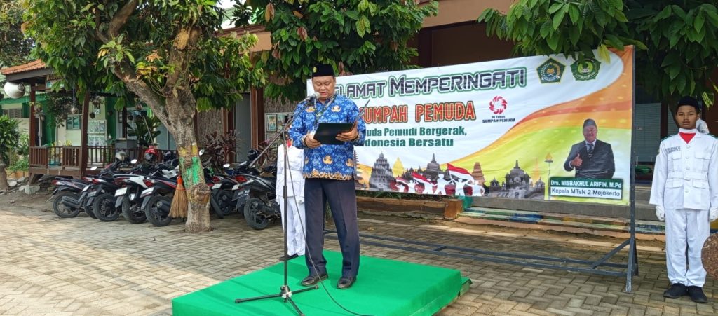 Kepala MTsN 2 Mojokerto Misbakhul Arifin dalam sambutannya menyampaikan, pemuda sebagai penurus bangsa, harus selalu menebar semangat jiwa patriotisme kepada bangsa Indonesia. Dan sumpah pemuda tahun 1928 telah melahirkan Ikrar sebuah komitmen kebagsaan, yaitu dengan kata Bertumpah Darah Satu Tanah Air Indonesia, Berbangsa Satu Bangsa Indonesia, Menjunjung Bahasa Persatuan Bahasa Indonesia. Ikrar ini sebagai dasar pemuda Indonesia untuk menjunjung tinggi Bahasa Indonesia sebagai bahasa pemersatu antar suku yang ada di Indonesia.