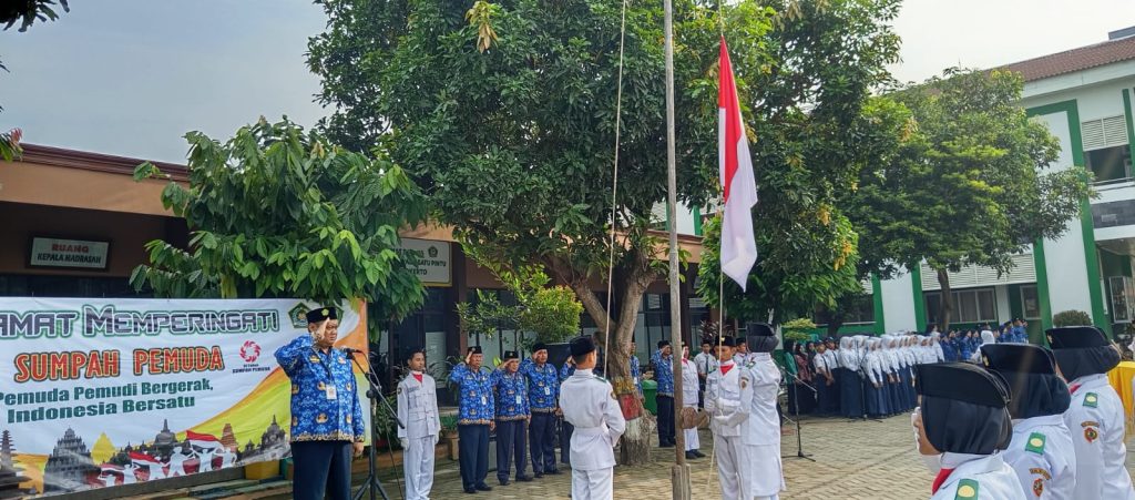 Kabupaten. Mojokerto (MTsN 2 Mojokerto) – Dengan Sumpah Pemuda Ke-97, Siswa MTsN 2 Mojokerto Mengelorakan Semagat Belajar. Sumpah Pemuda merupakan hal bersejarah penting bagi bangsa Indonesia. Maka, pemerintah menetapkan Sumpah Pemuda sebagai hari yang perlu diperingati oleh rakyat Indonesia, dalam bentuk upacara atau apel dan acara lainnya. Oleh karena itu, MTsN 2 Mojokerto menggelar upacara bendera, yang diikuti siswa kelas 7,8,9 dan Bapak/Ibu guru serta pegawai, Selasa (28/10/2025). Upacara dilaksanakan di halaman madrasah pukul 06.30 s.d. 07.15 WIB.