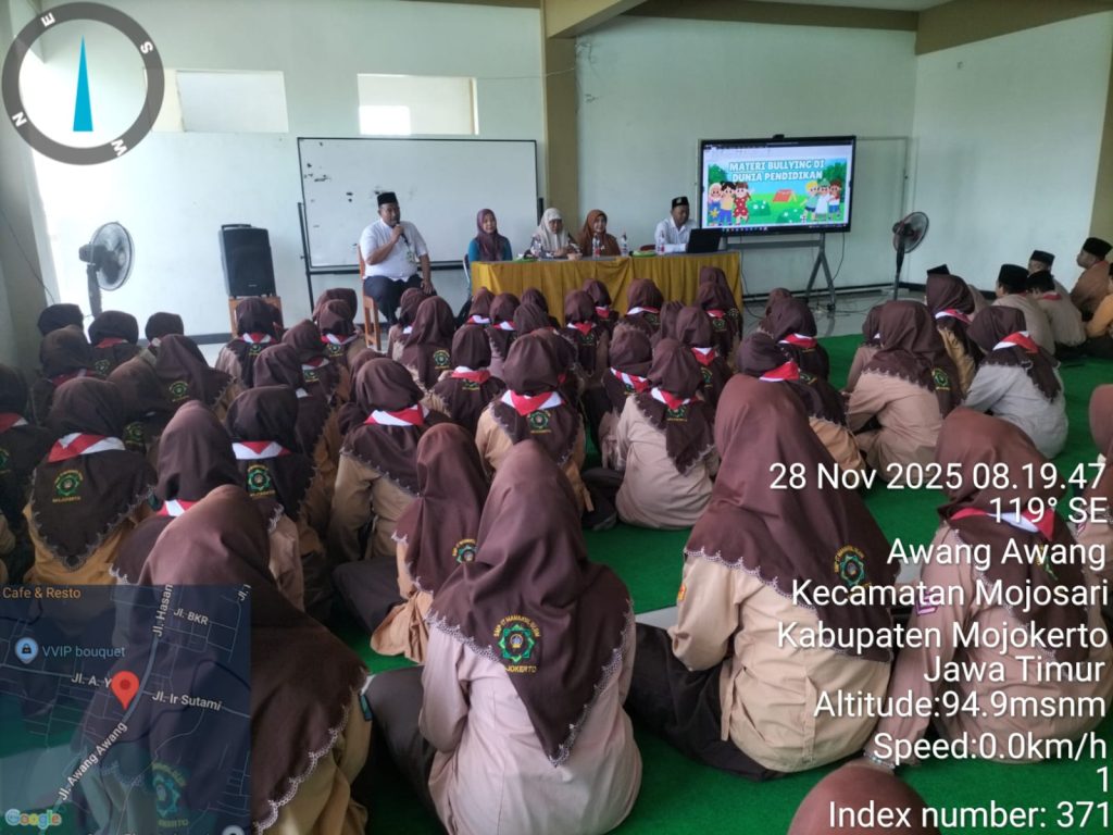 Mojosari, 30 November 2025 — KUA Kecamatan Mojosari terus memperkuat perannya dalam pembinaan generasi muda. Salah satunya melalui kegiatan Bimbingan Remaja Usia Sekolah di SMP IT Mambaul Ulum Awang-awang yang melibatkan seluruh siswa kelas 7, 8, dan 9 sebagai peserta. Kegiatan ini merupakan tindak lanjut implementasi MoU KUA Mojosari dengan SMP IT Mambaul Ulum, sebagai langkah kolaboratif untuk mencegah kekerasan terhadap anak—khususnya praktik bullying di lingkungan sekolah.
