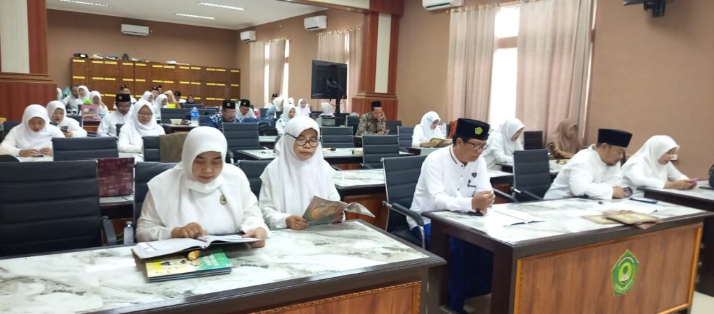 Kegiatan yang dilaksanakan secara daring, melalui zoom meeting di ruang guru MTsN 2 Mojokerto. Kegiatan ini diikuti Guru dan Tenaga Kependidikan (GTK) baik ASN, PPPK penuh waktu, dan PPPK paruh waktu. Acara dimulai pukul 07.001-1.00 WIB Khotmil Qur’an dilanjutkan pukul 13.00-13.30 WIB Doa Khotmil Qur’an berikutnya pukul 13.30-14.00 WIB Istighosah dan Doa Munajat HAB di penghujung acara pukul 14.00-15.00 WIB Pembinaan Kepala Kantor Wilayah Kementerian Agama Provinsi Jawa Timur Bapak Dr. KH. Akhmad Sruji Bahtiar, M.Pd.I.