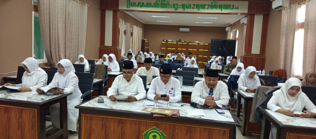 Kab. Mojokerto (MTsN 2 Mojokerto) – Dalam rangka memperingati Hari Amal Bakti (HAB) Kementerian Agama Republik Indonesia ke-80, maka keluarga besar MTsN 2 Mojokerto melaksanakan Khotmil Qur’an, Istighosah, dan Do’a yang diselenggarakan oleh Kantor Wilayah Kementerian Agama Provinsi Jawa Timur, Jum’at (2/1/2026). Kegiatan ini dilaksanakan sebagai bentuk rasa syukur serta permohonan keberkahan bagi institusi di bawah naungan Kementerian Agama.