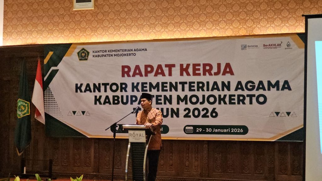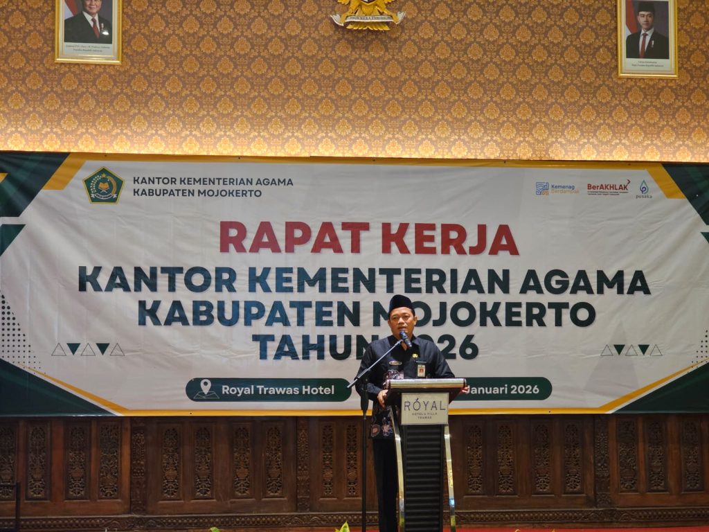 “Hal tersebut patut disyukuri. Tapi kita tidak boleh silau. Tahun 2026 kita harus memperkuat Asta Protas, dengan program program yang lebih menukik dan berdampak langsung pada masyarakat,” kata Kepala Kantor Kementerian Agama Kabupaten Mojokerto, Muttakin, pada saat pembukaan Rapat Kerja Kantor Kementerian Agama Kabupaten Mojokerto tahun 2026, Kamis, 29 Januari 2026, di Royal Hotel Trawas.