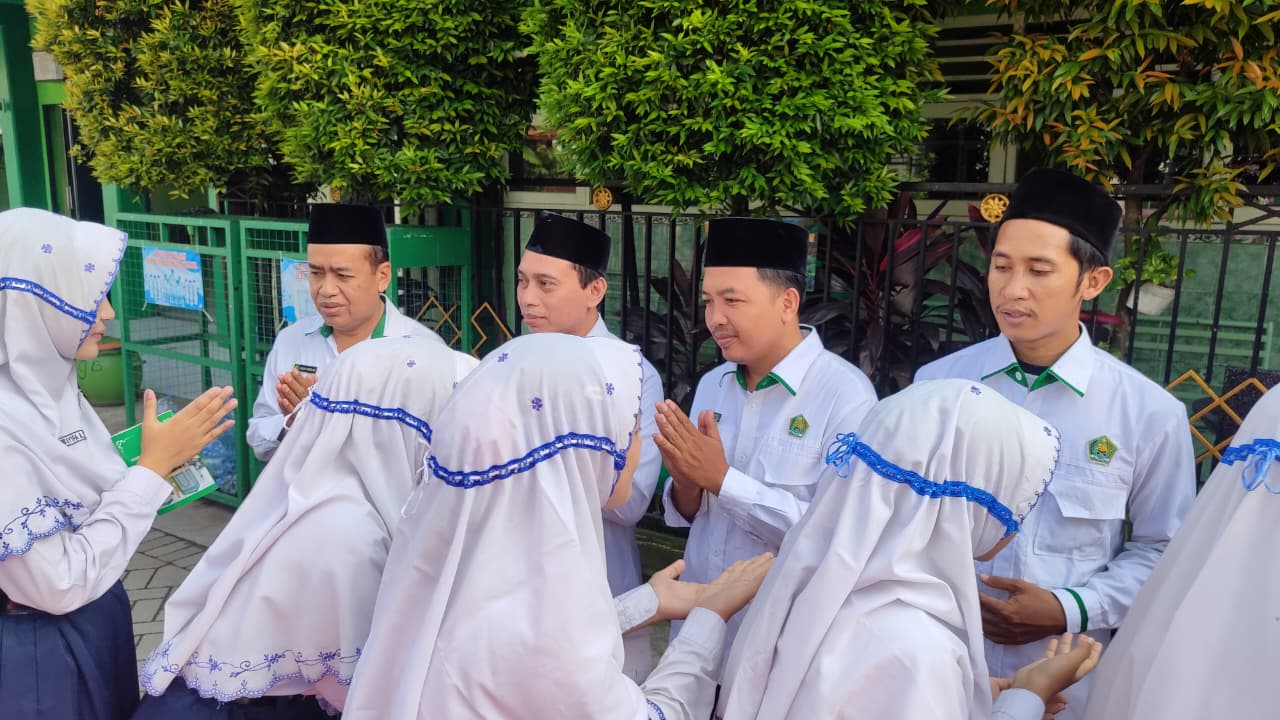 Kab. Mojokerto Jatim, (MTsN 1 Mojokerto). Di hari pertama masuk madrasah, pada Senin, (30/03) tahun 2026, MTsN 1 Mojokerto menggelar kegiatan Halal Bihalal. Kegiatan berlangsung setelah salat Dhuha dan Tahlil. Bertempat di halaman madrasah, seluruh GTK dan murid-murid kelas VII, VIII, dan IX mengikuti dengan tertib.