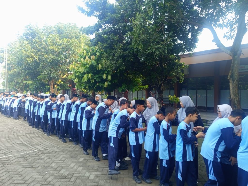 Kegiatan ini dilaksanakan tepat setelah rangkaian apel pagi selesai. Seluruh siswa tampak rapi berbaris, menciptakan pemandangan yang menyejukkan di halaman madrasah. Momentum ini menjadi ajang penting untuk saling memaafkan dan mempererat tali silaturahmi antara seluruh warga madrasah.
