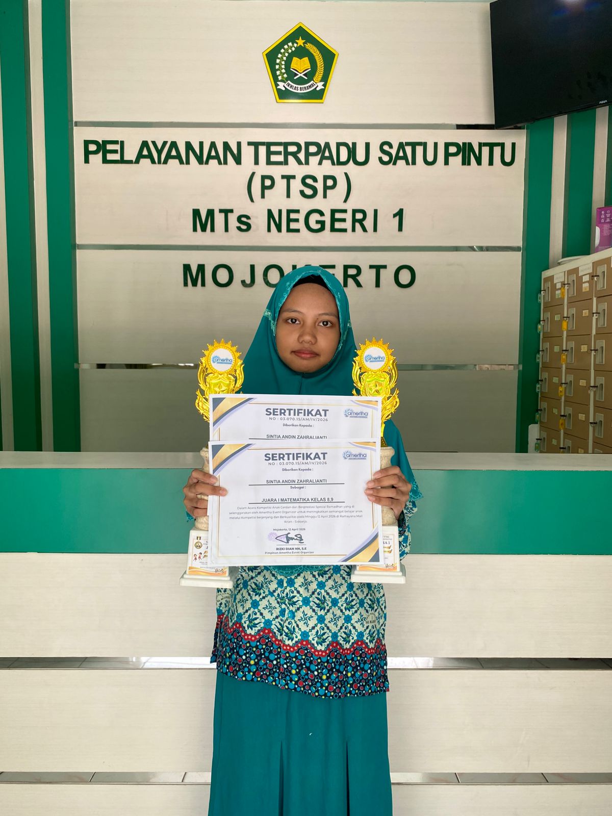 Kab. Mojokerto (MTsN 1) – Sabtu, (18/4/2026) MTsN 1 Mojokerto kembali mengukuhkan eksistensinya sebagai madrasah pencetak generasi unggul. Prestasi membanggakan kali ini datang dari Sintia Andin Zahralianti, siswa berbakat yang berhasil menyabet gelar Juara 1 Tingkat Nasional dalam ajang kompetisi Matematika & Sains untuk kategori kelas 8 dan 9.