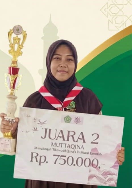 Kab. Mojokerto (MTsN 2) – Prestasi membanggakan kembali diukir oleh santriwati asal Kabupaten Mojokerto di kancah nasional. Khusniah Zahrani Sakinah, siswi berbakat dari MTsN 2 Mojokerto, berhasil menyabet gelar Juara 2 dalam ajang Musabaqah Tilawatil Quran (MTQ) tingkat Nasional yang diselenggarakan di Madrasah Bertaraf Internasional (MBI) Amanatul Ummah, Pacet, Sabtu (18/4/2026).