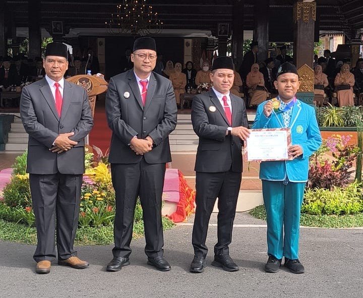 Read MoreKab. Mojokerto (MTsN 1) – Suasana penuh kebanggaan menyelimuti halaman Pendopo Kabupaten Mojokerto pada peringatan Hari Amal Bakti (HAB) Kementerian Agama ke-80, Sabtu (3/1/2026). Dalam upacara khidmat tersebut, Bupati Mojokerto, Dr. H. Muhammad Al Barra, Lc., M.Hum., secara langsung memberikan penghargaan kehormatan kepada lima siswa yang telah mengharumkan nama madrasah di kancah nasional hingga internasional.…